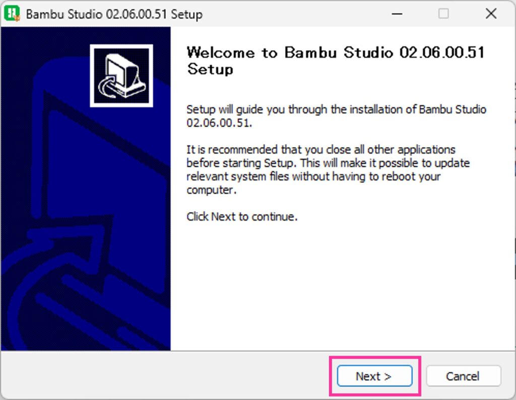 Run Bambu Studio –> ソフトの起動